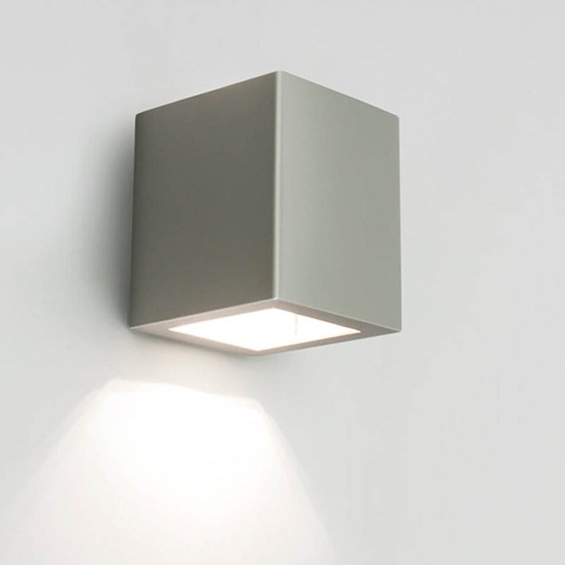 Arandela decorativa quadrada, corpo em alumínio, difusor em vidro temperado jateado. Com led incluso, 3,5w por facho, driver BIVOLT.