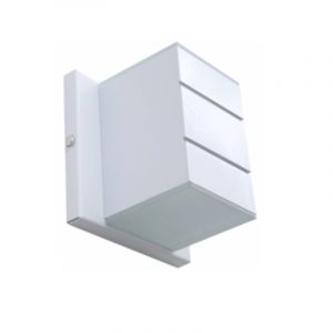 Arandela decorativa frizada vertical, com frizos 2 fachos de luz, corpo totalmente em alumínio, com vidro temperado. 1x soquete E-27.